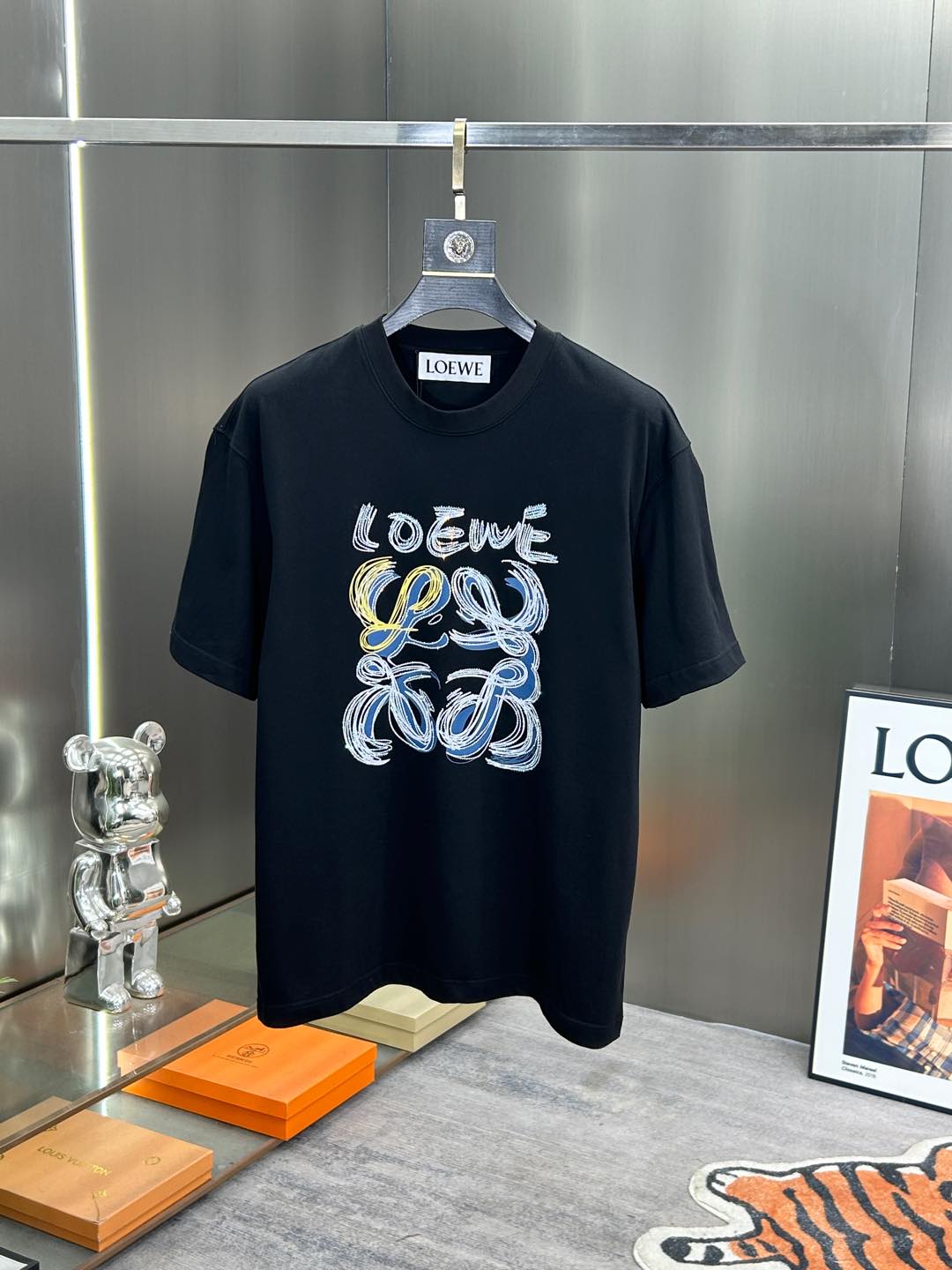 高仿網站Loewe羅意威2025春夏最新款黑色短袖圓領T恤