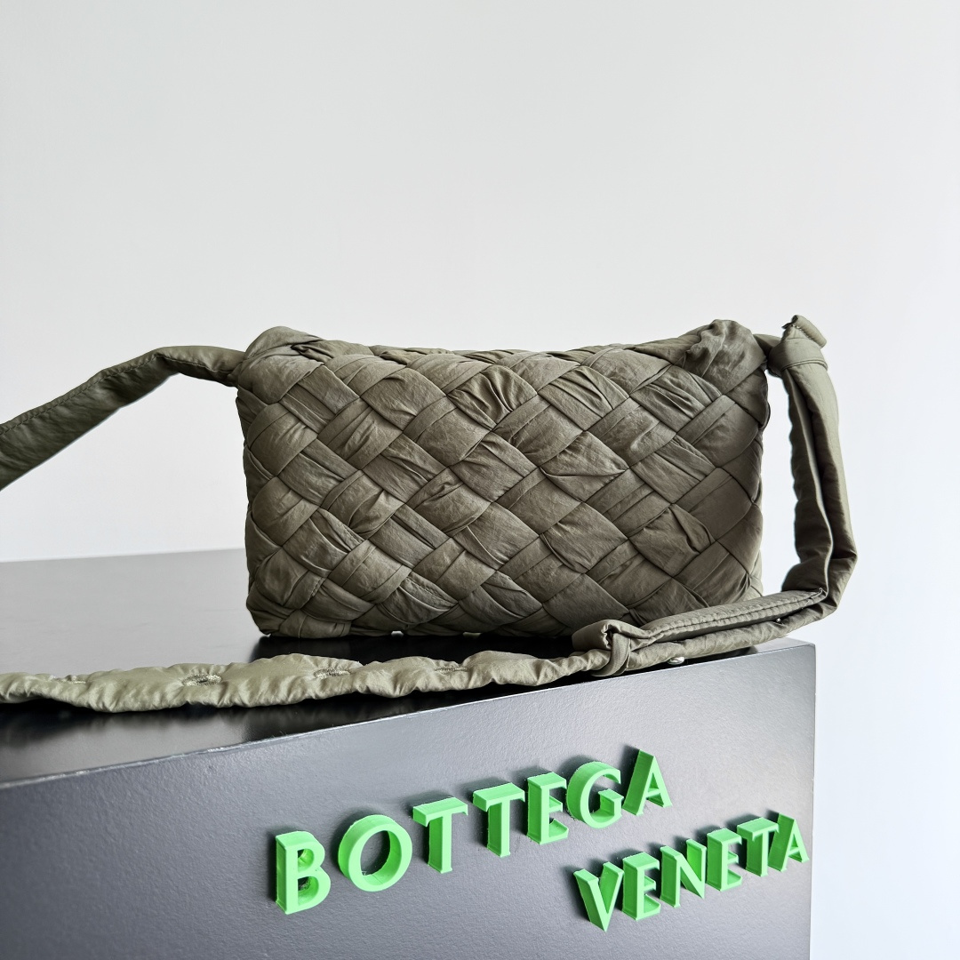 這款肩背包以 Bottega Veneta 標誌性的編織設計語彙作為靈感,整體包身採用柔軟結構,呈現自然垂墜感,搭配立體交織的編織紋理,使視覺層次更加豐富。橄欖灰綠色調介於中性色與大地色之間,低調卻極具質感,能輕鬆融入各種日常穿搭風格,無論是簡約休閒或輕通勤造型都十分合適。包身線條圓潤柔和,不強調硬挺輪廓,反而展現隨性且放鬆的高級感,特別適合喜愛自然風格與極簡美學的使用者。肩背設計貼合身形,背負時輕鬆舒適,內部空間可收納手機、皮夾與隨身小物,滿足日常外出需求。整體設計不依賴明顯標誌,而是透過材質表現與編織細節傳達風格態度。若你偏好 Bottega Veneta 所展現的低調奢華與工藝感,這款以品牌設計語彙為靈感的編織肩背包,能為日常造型帶來自然且耐看的質感加分。