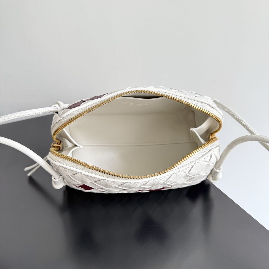 Bottega Veneta 風格靈感 拼色編織拉鍊斜背包 酒紅白 小巧設計款794258