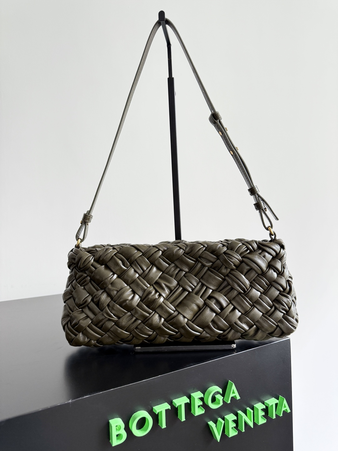 Bottega Veneta A貨Kalimero Cha Cham墨綠色編織手袋 手工油蠟牛皮質感785780
