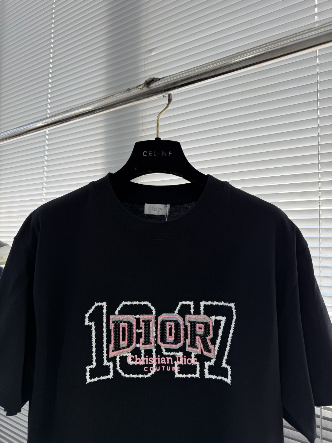 這款Dior高仿短袖T恤以經典黑色作為基底,搭配醒目的107字母刺繡設計,融合品牌標誌元素與潮流風格,整體呈現低調中帶有強烈辨識度的時尚感。採用寬鬆版型剪裁,穿著舒適自在,適合日常休閒與街頭穿搭。面料選用高品質棉質材質,手感柔軟且具備良好透氣性,長時間穿著依然清爽。細節透過精品仿製工藝精細呈現,刺繡立體細膩、線條清晰,整體版型與質感貼近專櫃水準。無論搭配牛仔褲、休閒褲或短褲,都能輕鬆打造個性鮮明的潮流造型,是高仿T恤推薦與百搭日常穿搭不可或缺的熱門單品。