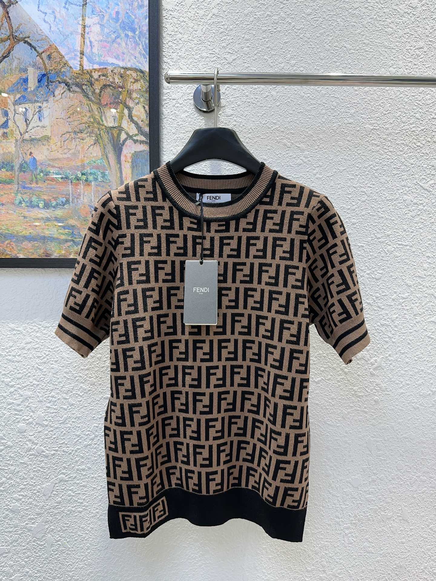 這款Fendi經典棕黑FF老花針織短袖上衣以高仿一比一工藝製作,採用品牌標誌性的FF滿版圖騰設計,展現極高辨識度與精品風格。整體選用細膩柔軟針織材質,具備良好透氣性與舒適度,適合春夏季日常穿搭。棕黑經典配色穩重且百搭,能輕鬆融入多種穿搭風格,無論搭配牛仔褲、寬褲或短裙都能呈現時尚造型。圓領設計結合修身版型,提升整體比例與氣質層次。此款屬於精品仿製高熱度單品,在高仿網站與高仿上衣關鍵詞中具備穩定搜尋流量,是兼具品牌辨識度與實穿性的高仿上衣推薦款。