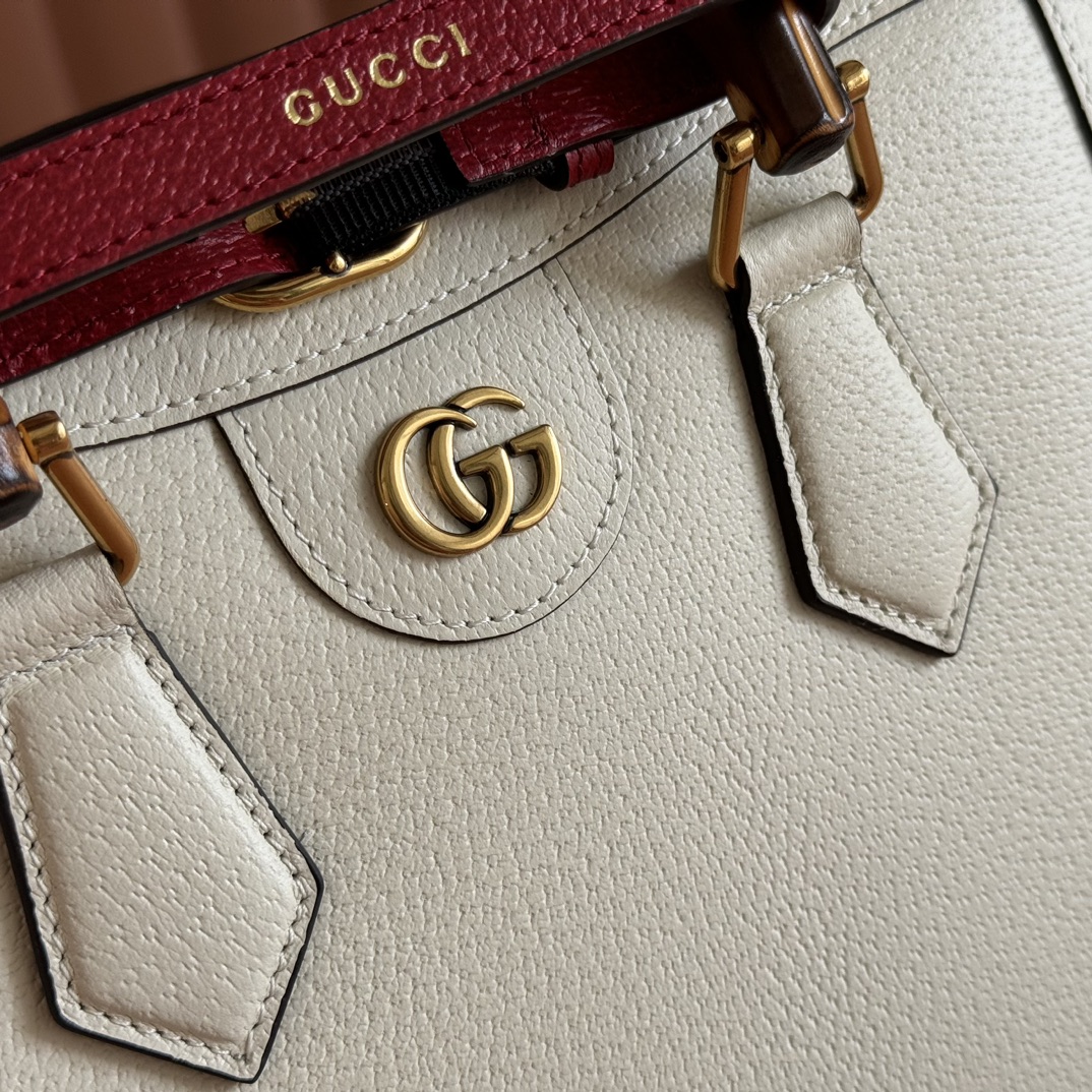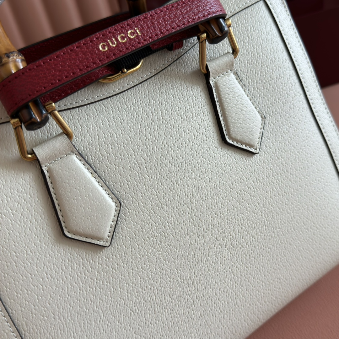 Gucci高仿竹節手提斜背包米白拼紅撞色設計雙G標誌優雅百搭精品風格702721