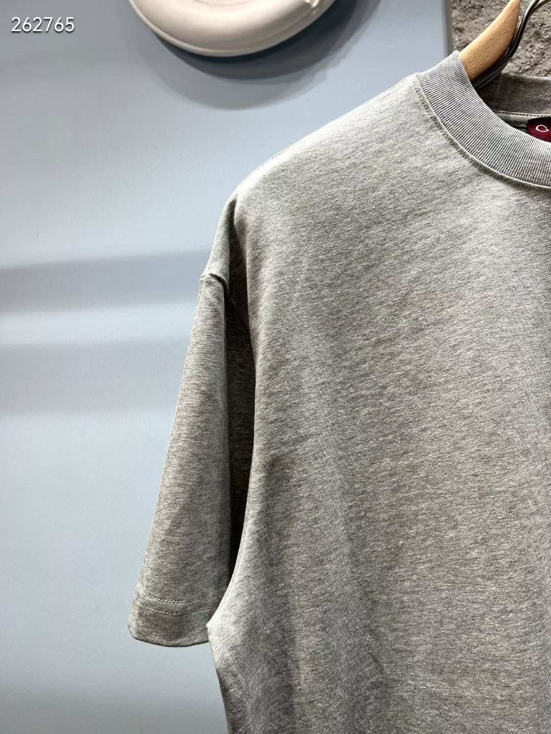 這款Gucci高仿短袖T恤以淺灰色為主調,展現簡約低調的時尚質感,胸前GG刺繡LOGO精緻立體,細節處理到位,體現高仿精品的高再現度工藝。選用高品質純棉材質打造,手感細膩柔軟,具備良好透氣性與舒適度,適合四季單穿或內搭。版型採用經典圓領設計,搭配自然寬鬆剪裁,修飾身形同時提升穿著自由度。整體設計百搭實用,可輕鬆搭配牛仔褲、休閒褲或運動風單品,是高仿網站熱銷的經典款式之一,兼具舒適性與潮流感,滿足日常穿搭與時尚需求。
