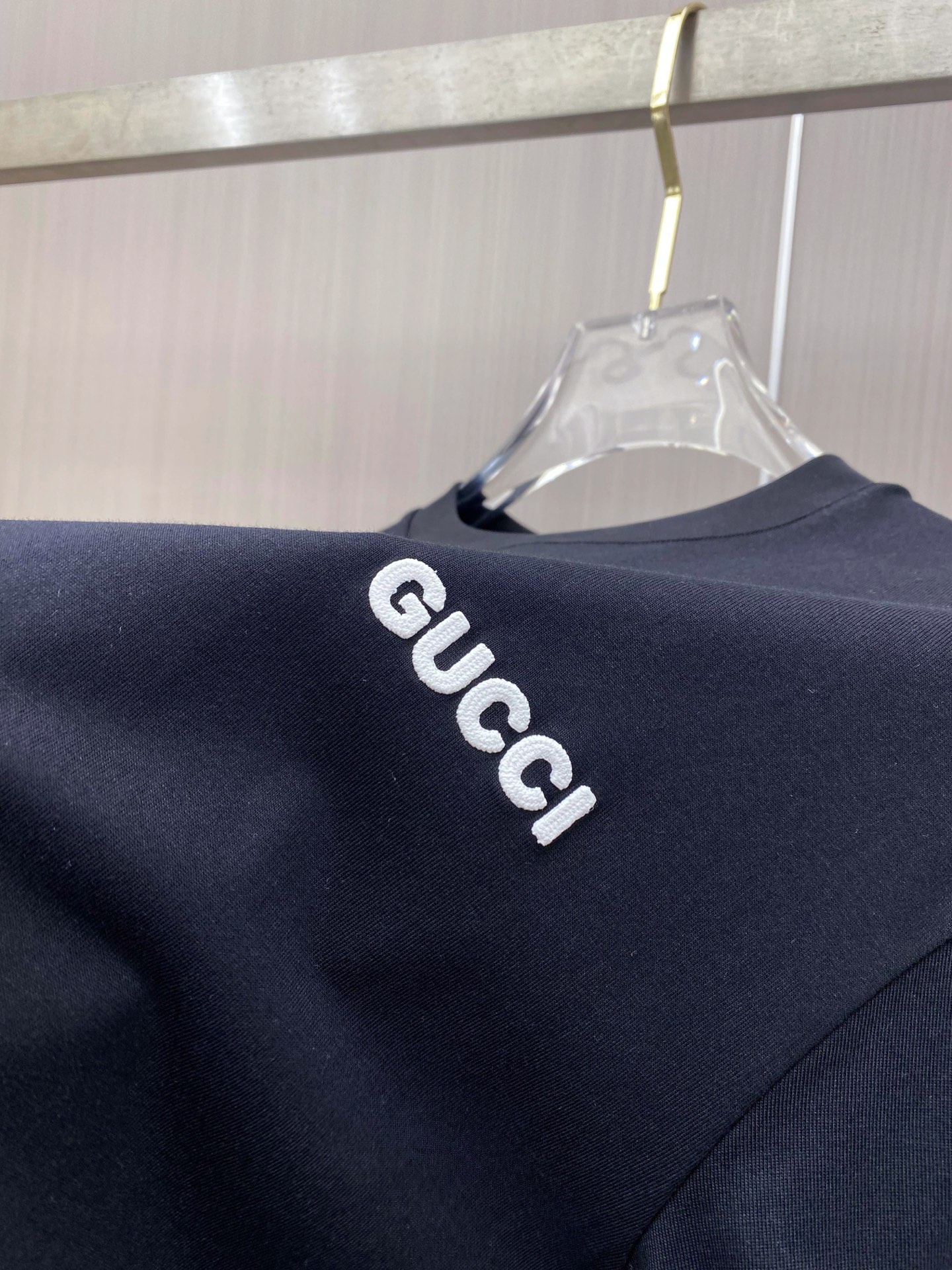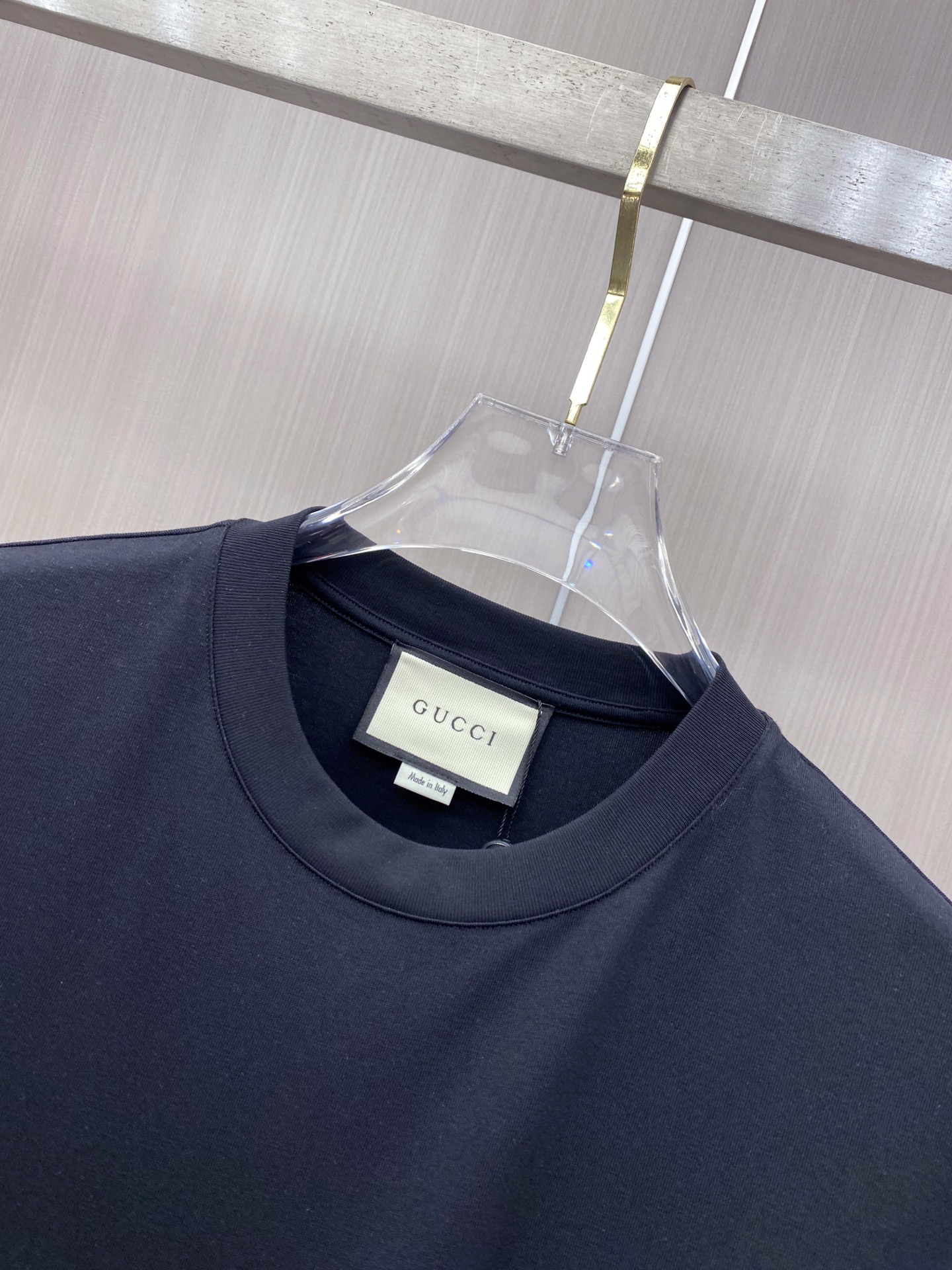 這款Gucci高仿短袖T恤採用經典黑色設計,搭配胸前GUCCI字母刺繡LOGO,呈現簡約俐落的時尚風格,細節做工精緻,展現高仿精品的高再現度質感。選用高品質純棉面料製作,觸感柔軟舒適,透氣性佳,適合長時間穿著。圓領設計結合自然寬鬆版型,不僅修飾身形,同時提升整體穿著的舒適度與靈活性。整體風格低調百搭,可輕鬆搭配牛仔褲、休閒褲或運動風單品,是精品仿製服飾中極具實穿性的經典款之一,無論日常出行或潮流搭配都能輕鬆駕馭。