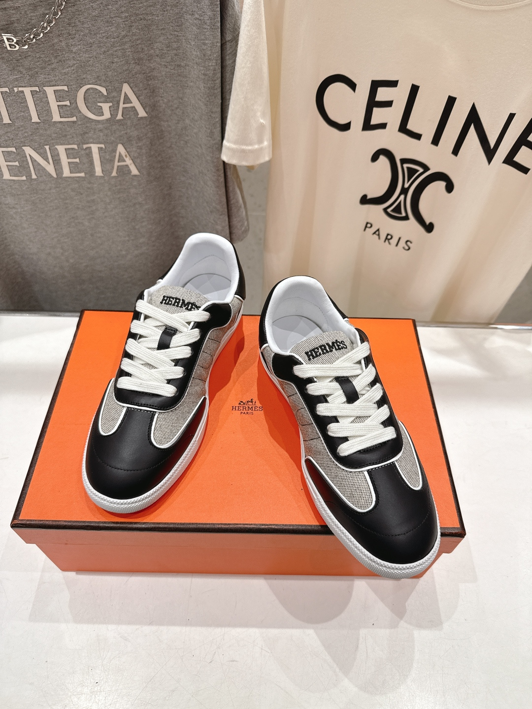 此款 Hermès 高仿莆田鞋黑白拼色低筒運動鞋以經典運動鞋輪廓為基礎,透過黑白對比配色展現俐落有型的法式休閒風格。鞋面採用高品質皮革結合透氣織布材質,質感層次分明,縫線細緻工整,整體比例依原版鞋型對位調整,視覺自然不突兀。鞋舌與內裡包覆柔軟,搭配回彈適中的鞋墊設計,長時間行走仍能維持良好舒適度。中底結構穩定,外底選用耐磨橡膠材質,抓地力表現可靠,日常外出或通勤皆合適。配色百搭不挑風格,無論牛仔褲、休閒褲或簡約穿搭都能輕鬆駕馭,是高仿莆田鞋推薦中兼顧外觀完成度、腳感與耐用度的熱門選擇。
