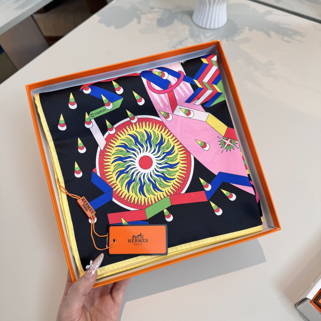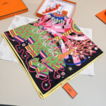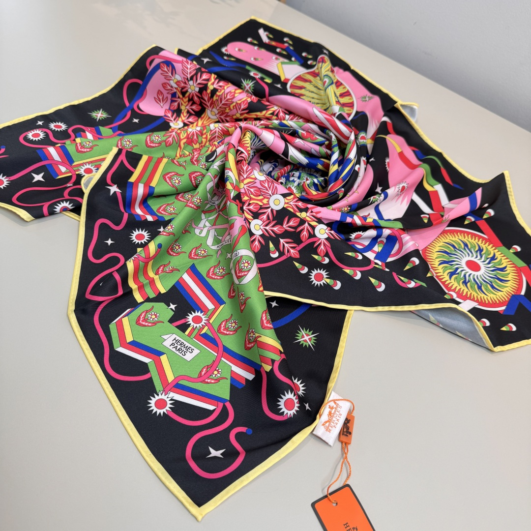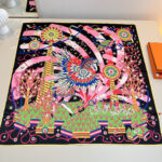 這款Hermes高仿絲巾以黑色底為主視覺,融合粉色、綠色與多彩元素構成極具辨識度的馬術與飛鳥藝術圖騰,整體風格華麗且充滿動感,呈現強烈視覺層次與時尚氣息。圖案細節精緻繁複,從飛鳥展翅、幾何線條到人物與自然元素交織,展現高度還原的精品仿製與復刻版工藝,使整體畫面立體生動。採用絲滑細膩面料打造,觸感柔順親膚,具備優異垂墜感與舒適度,可靈活運用於頸間圍巾、頭巾或包款裝飾,輕鬆提升整體穿搭質感。此款為高仿網站熱銷款之一,結合頂級原單質感與藝術設計元素,不論日常造型或正式場合皆能完美駕馭,是展現個人品味與高級時尚感的精品絲巾首選。