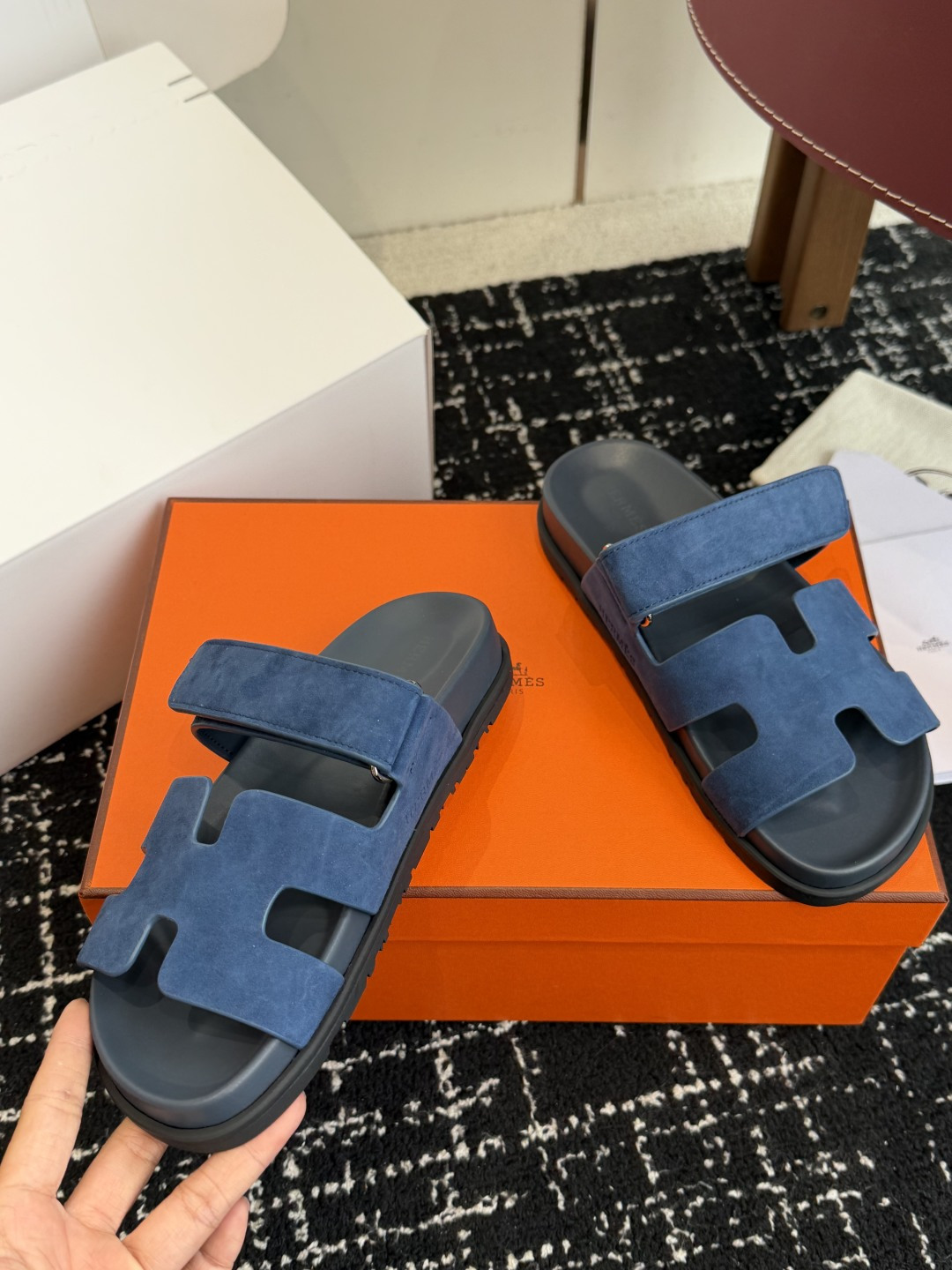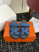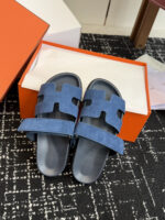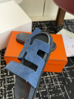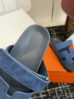 這款HermesA貨拖鞋以經典H字母鏤空設計為主軸,搭配藍色麂皮材質,呈現出低調沉穩且極具質感的時尚風格,整體造型簡約俐落,適合多種日常與休閒穿搭場景。鞋面選用高品質麂皮打造,觸感柔順細膩,視覺上帶有自然霧面光澤,提升整體高級感與層次感,同時具備良好包覆性與透氣性。鞋底設計穩定防滑,行走輕盈且貼合腳型,長時間穿著依然舒適無負擔。整體工藝達到精品仿製與復刻版水準,是高仿網站夏季熱銷款之一,無論搭配簡約日常穿搭或輕奢風格造型皆能輕鬆駕馭,展現沉穩優雅與時尚品味兼具的魅力。