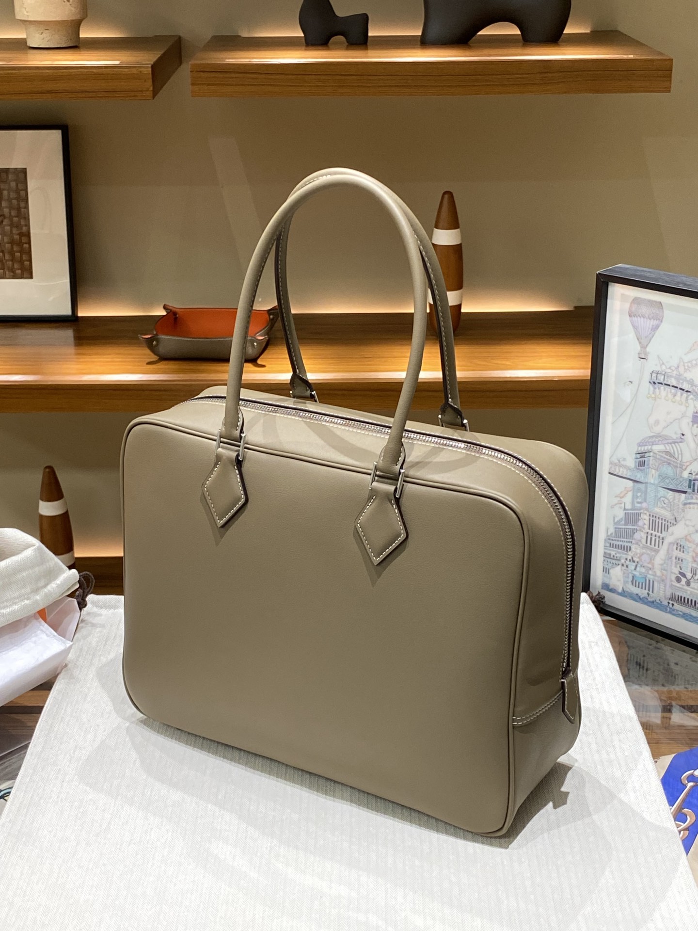 Hermès愛馬仕一比一Plume羽毛包 大象灰32cm Swift皮革 高端大容量手提包