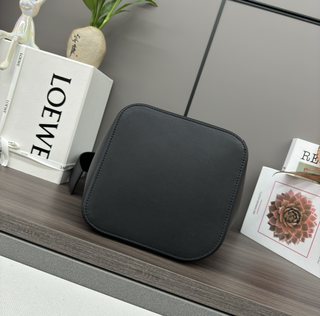 loewe羅意威原單高仿複刻包包 中號柔軟牛皮革Pebble Bucket水桶包 黑色