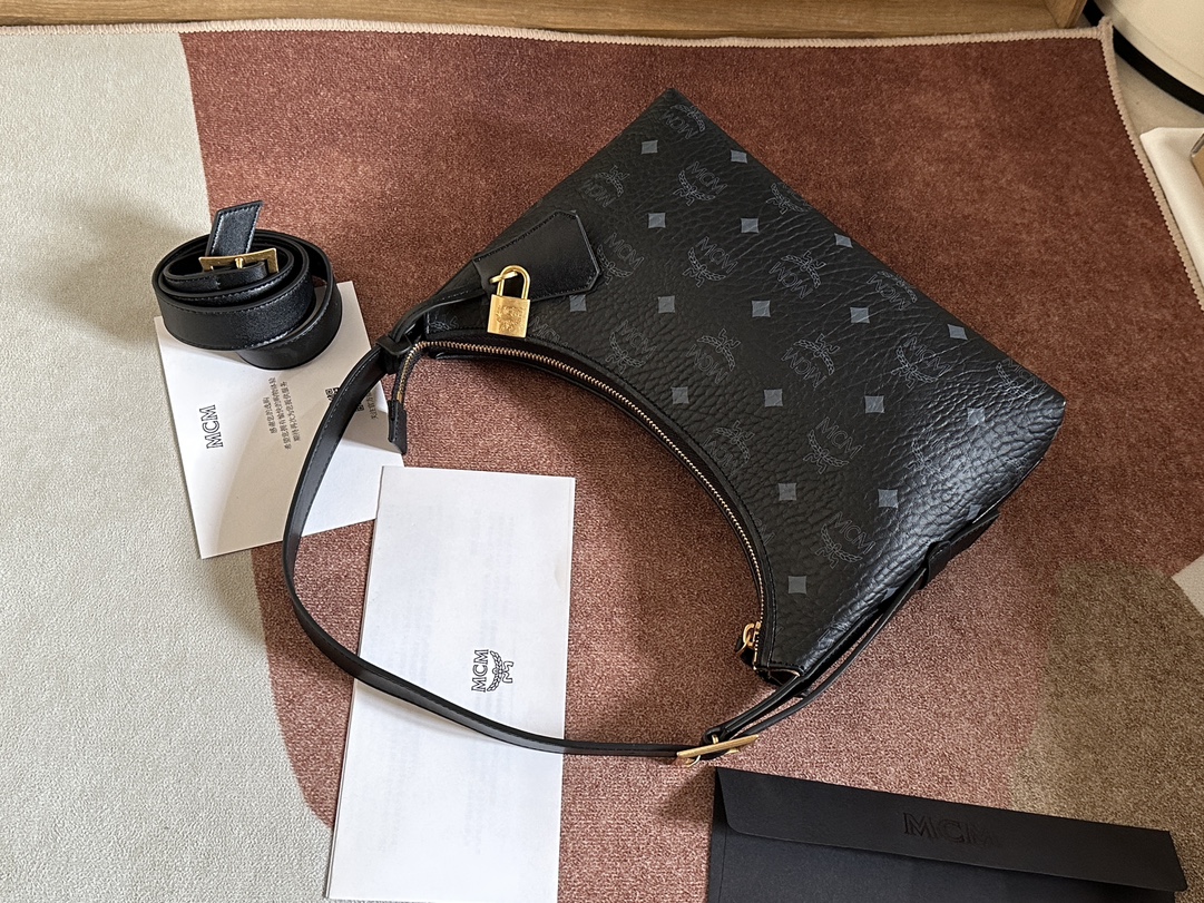 複刻原單MCM包包 中號Visetos 系列 Aren Hobo包肩背包 黑色
