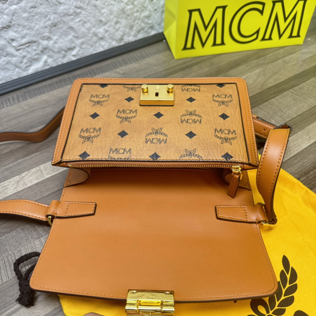 MCM Tracy Visetos斜背包干邑色小號翻蓋包精品仿製一比一原單款