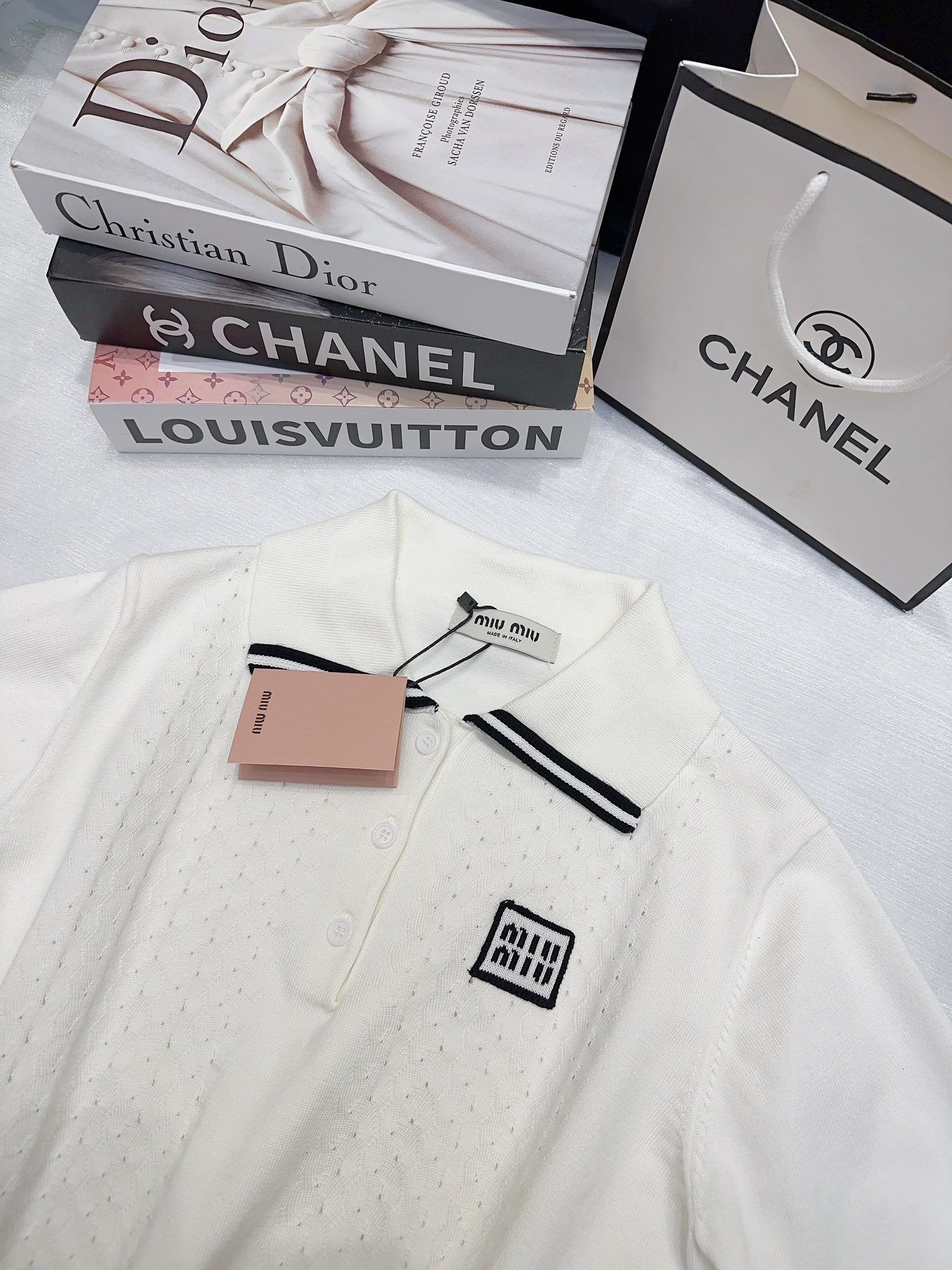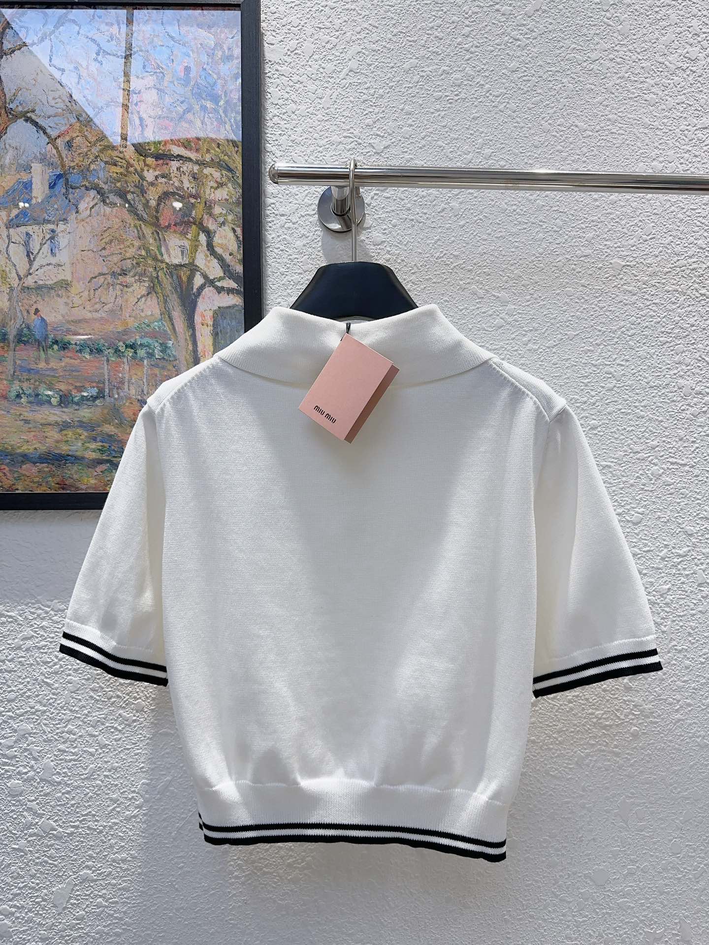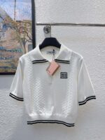 這款Miu Miu白色針織翻領短袖上衣以高仿一比一工藝打造,整體結合學院風設計與精緻Logo刺繡細節,呈現甜美與時尚兼具的風格。採用柔軟細緻針織面料,具備良好透氣性與親膚觸感,適合春夏日常穿搭。翻領設計搭配黑色滾邊細節,使整體更具層次感與辨識度,簡約卻不單調。白色基底百搭實穿,可輕鬆搭配裙裝、牛仔褲或西裝褲,打造多種穿搭風格。此款屬於高仿上衣中偏向少女學院路線的熱門單品,結合精品仿製與日常穿搭需求,是目前搜尋熱度與轉單表現兼具的款式之一。