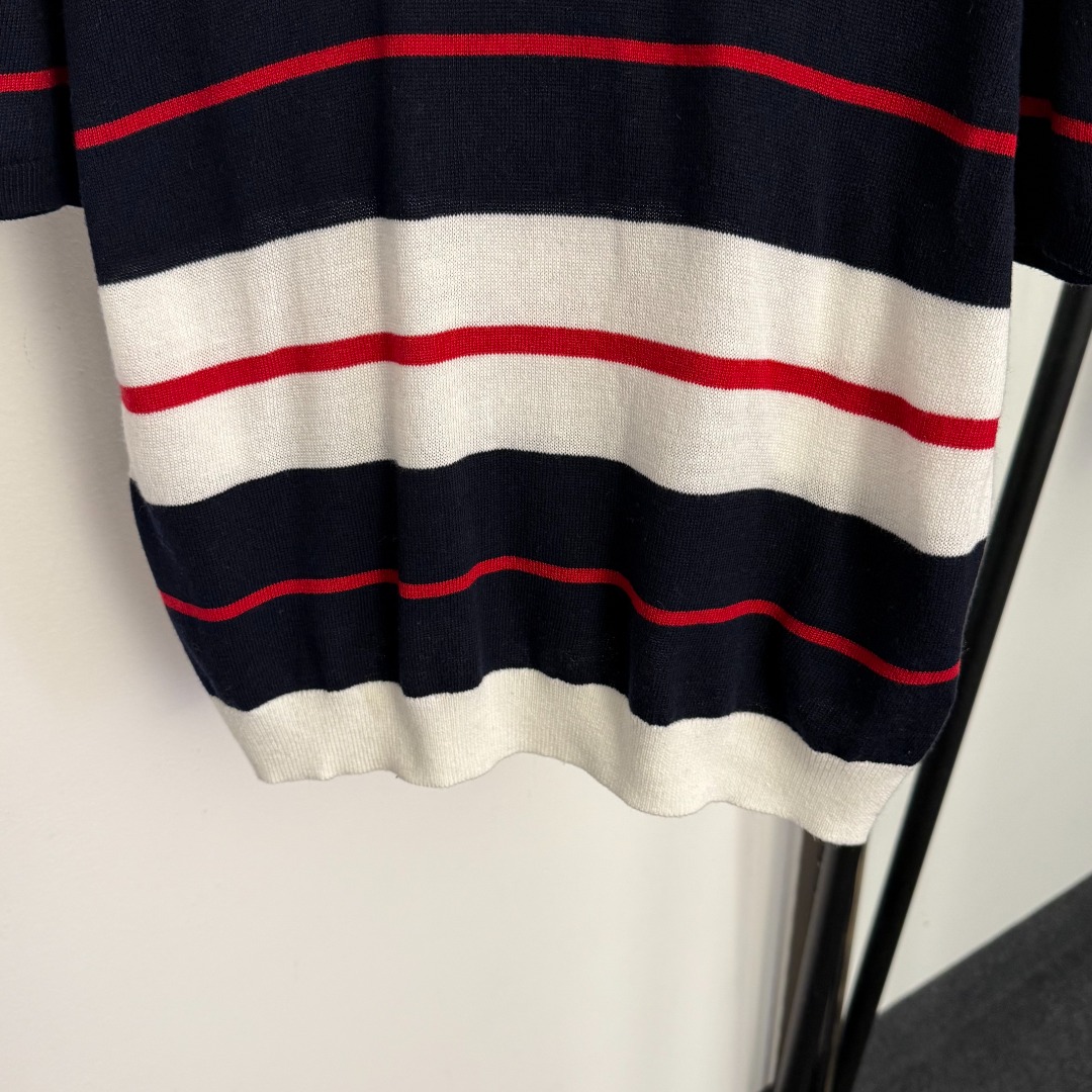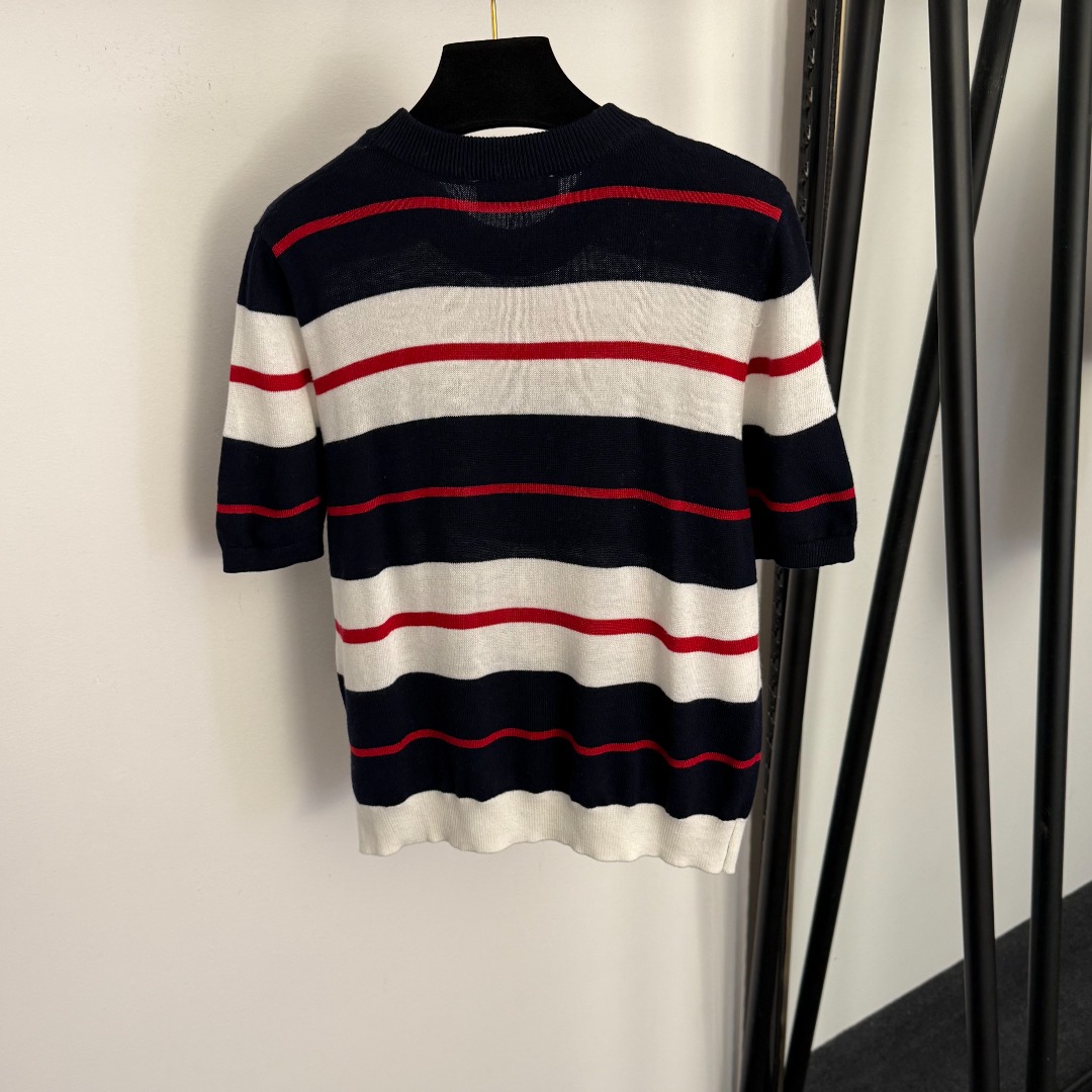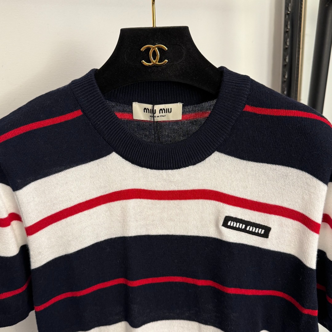 Miu Miu高仿條紋針織短袖上衣海軍風撞色設計一比一復刻休閒百搭款