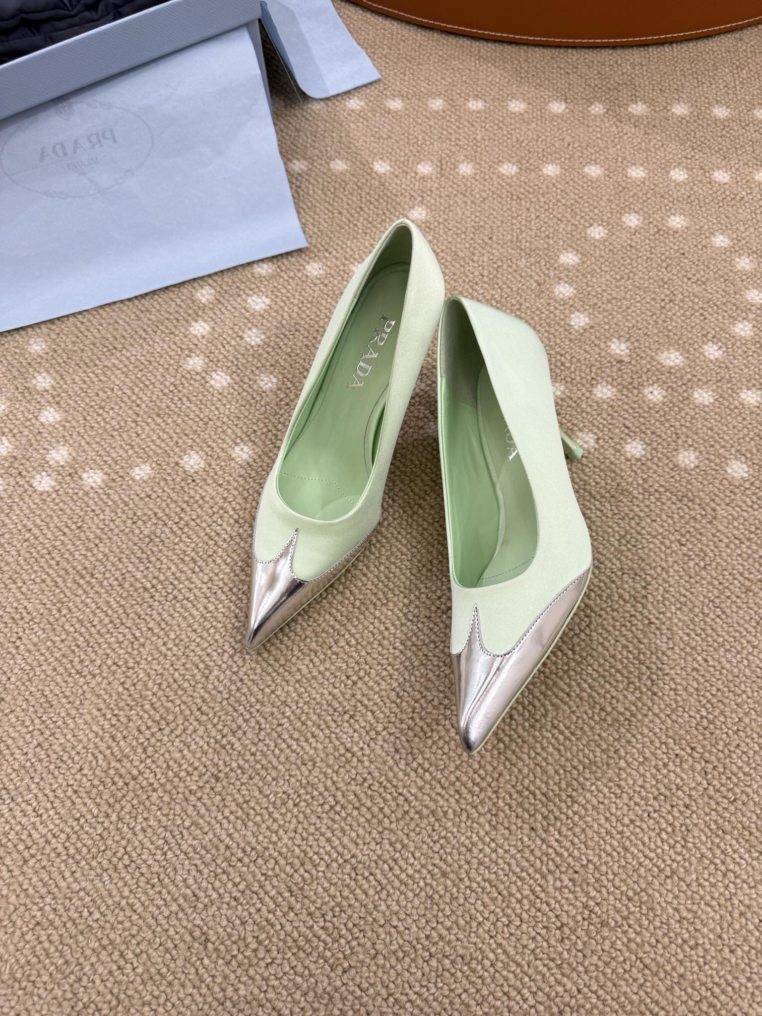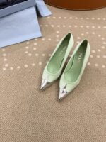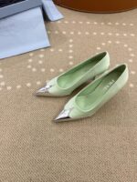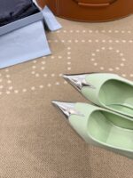這款Prada一比一尖頭高跟鞋以清新薄荷綠色為主調,搭配金屬光澤尖頭拼接設計,展現出柔和又帶有時尚前衛感的高級氣質,完美詮釋優雅與個性兼具的女性風格。修長尖頭輪廓有效延伸腿部比例,使整體造型更加俐落修長,無論搭配正式服裝或日常穿搭都能展現精緻感。鞋面採用細膩材質製成,柔軟貼合腳型,提升長時間穿著的舒適度。細跟設計優雅纖細,兼顧美感與穩定性,行走之間更顯輕盈自信。整體工藝達到高仿與一比一水準,細節精緻,是高仿網站熱銷精品女鞋之一,特別適合春夏季節搭配洋裝、套裝或簡約風格穿搭,輕鬆打造清新高級的時尚造型。