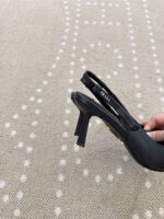 這款Prada高仿莆田鞋尖頭細跟後空高跟鞋以經典黑色為主調,搭配俐落尖頭輪廓與優雅細跟設計,展現出低調且高級的時尚氣質。鞋面採用細膩皮革材質打造,手感柔滑並具自然光澤,提升整體穿搭質感。後空設計結合簡約綁帶元素,不僅增添造型層次,也提升穿著穩定性與舒適度,使行走更加輕盈自在。細跟結構有效修飾腿部比例,讓整體線條更顯修長優雅,適合約會、宴會或正式場合穿搭。整體工藝達到高仿與一比一水準,細節處理精緻,是高仿網站熱門精品仿製鞋款之一,無論搭配洋裝、西裝或簡約造型都能輕鬆駕馭,展現出優雅與時尚兼具的魅力,是不可或缺的經典百搭單品。
