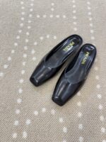 這款Prada原單方頭穆勒鞋以經典黑色為主調,結合俐落方頭輪廓與低跟設計,呈現出極簡且高級的時尚風格。鞋面採用細膩皮革製成,質感柔滑且富有光澤,能自然提升整體穿搭層次。方頭設計不僅具備現代感,同時提供更寬敞舒適的腳趾空間,適合長時間穿著。穆勒鞋後跟開放式結構方便穿脫,兼具實用性與時尚感,低跟設計則讓行走更加穩定,適合日常通勤與輕鬆出行。整體做工達到高仿與一比一水準,細節精緻,是高仿網站熱門精品仿製鞋款之一,無論搭配西裝褲、牛仔褲或裙裝皆能輕鬆駕馭,展現出簡約優雅且不失質感的穿搭風格,是現代女性不可或缺的百搭單品。
