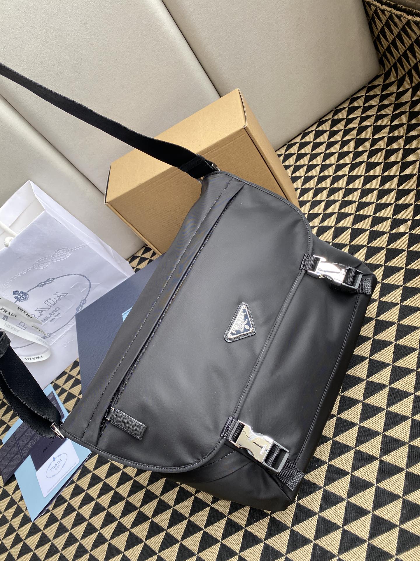 這款郵差包由Re-Nylon再生尼龍面料設計,翻蓋和按鎖開合,三個外部拉鍊式口袋,內部拉鍊式口袋和貼袋。容量空間大,又是一款永久不過時爆款。帥哥們,趕緊入吧🎉🎉