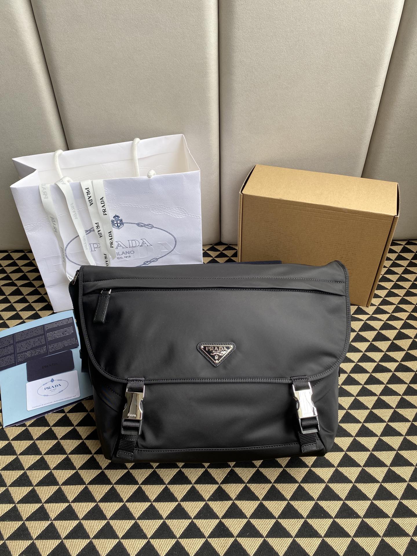 高仿prada普拉達包包 尼龍郵差包 Re-Nylon 及 Saffiano 皮革肩背袋