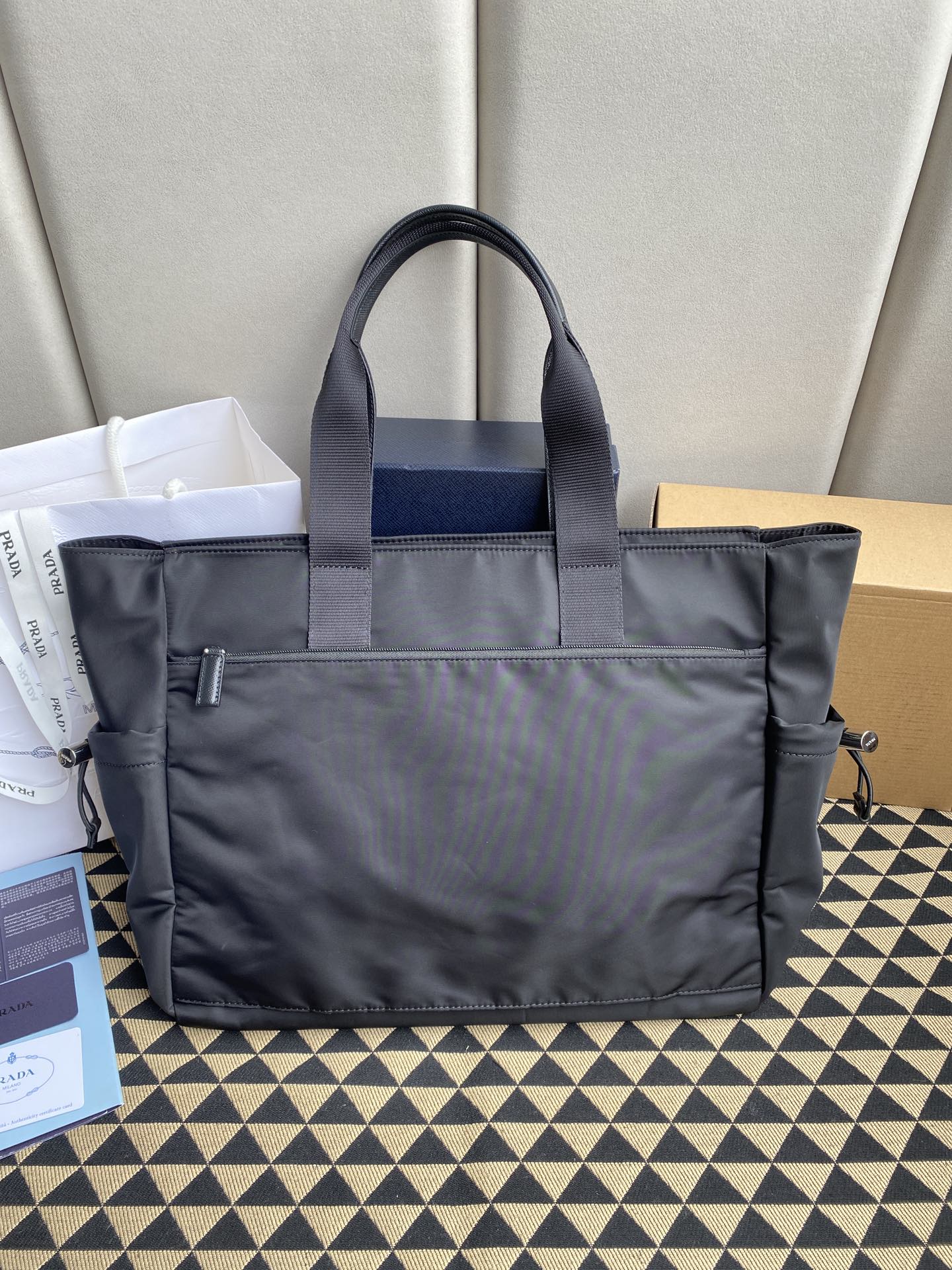 典款購物袋2VG042🤙🤙,又來一款爆款運動風型包,頂級原單貨👏🏻👏🏻採用進口尼龍面料,頂級五金,尼龍雙手提和十字紋牛皮飾邊,側邊兩個實用抽繩內袋,一個背面拉鍊袋,又🉑️插在拉桿箱上,平時背和出差都適合,兩全其美🙊🙊輕便又適用,